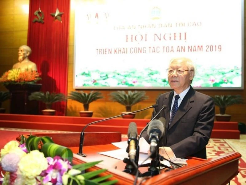 Phát biểu chỉ đạo tại Hội nghị, Tổng Bí thư, Chủ tịch nước Nguyễn Phú Trọng đã đánh giá cao truyền thống tốt đẹp, những đóng góp của hệ thống Tòa án trong 73 năm qua đối với sự nghiệp cách mạng của đất nước cũng như những kết quả đạt được trong năm 2018. Tổng Bí thư cũng chỉ ra những tồn tại, hạn chế và ghi nhận những khó khăn thử thách mà Tòa án các cấp còn đối mặt... Theo Tổng Bí thư, Chủ tịch nước Nguyễn Phú Trọng, mỗi bản án phải làm sao để thực sự "tâm phục, khẩu phục," khuất phục được tội phạm, thuyết phục được các bên, được công chúng đồng thuận; phải tạo ra được các chuẩn mực pháp lý, chuẩn mực đạo đức, có tác dụng giáo dục pháp luật và định hướng hoạt động của xã hội.