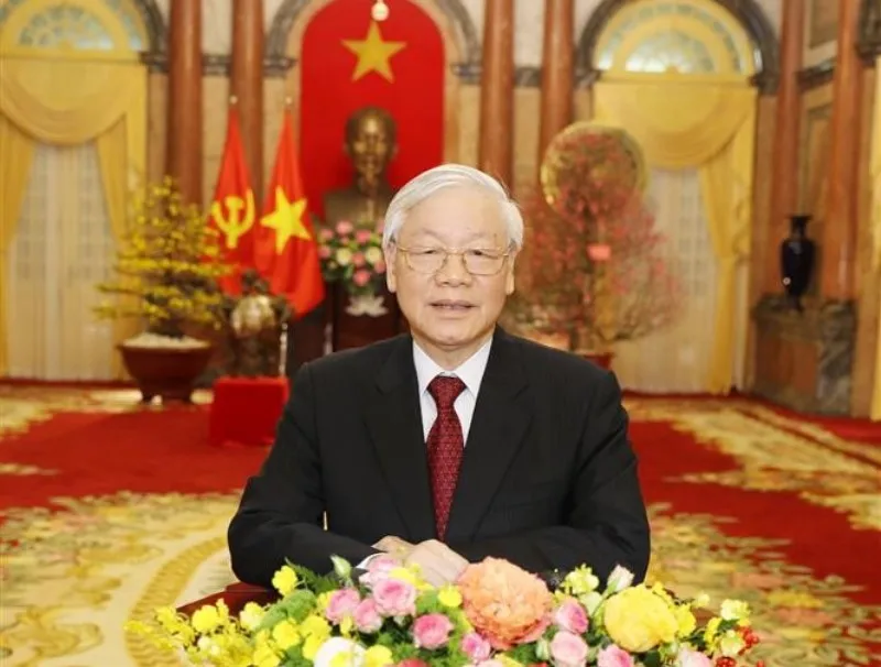 Vui mừng khi mùa xuân mới tràn đầy niềm tin và hi vọng lại đang về, vào thời khắc thiêng liêng rất có ý nghĩa này, Tổng Bí thư gửi tới đồng bào, đồng chí, chiến sĩ cả nước và cộng đồng người Việt ở nước ngoài những tình cảm thân thiết và lời chúc mừng năm mới tốt đẹp nhất.