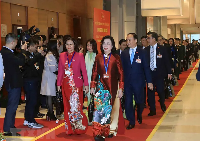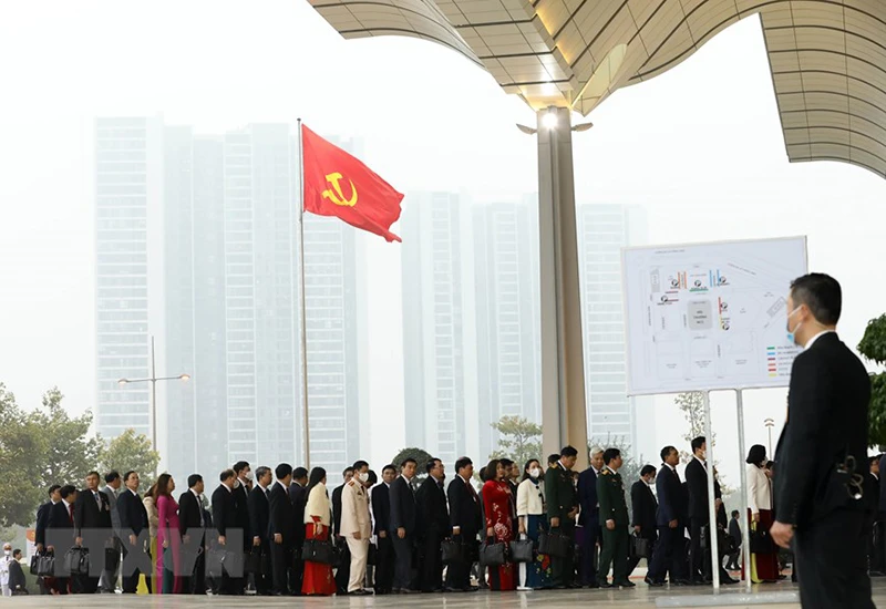 Các đại biểu đến dự phiên trù bị Đại hội XIII của Đảng. Ảnh: TTXVN