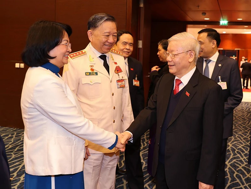 Tổng Bí thư, Chủ tịch nước Nguyễn Phú Trọng cùng các đại biểu dự phiên trù bị. Ảnh: TTXVN