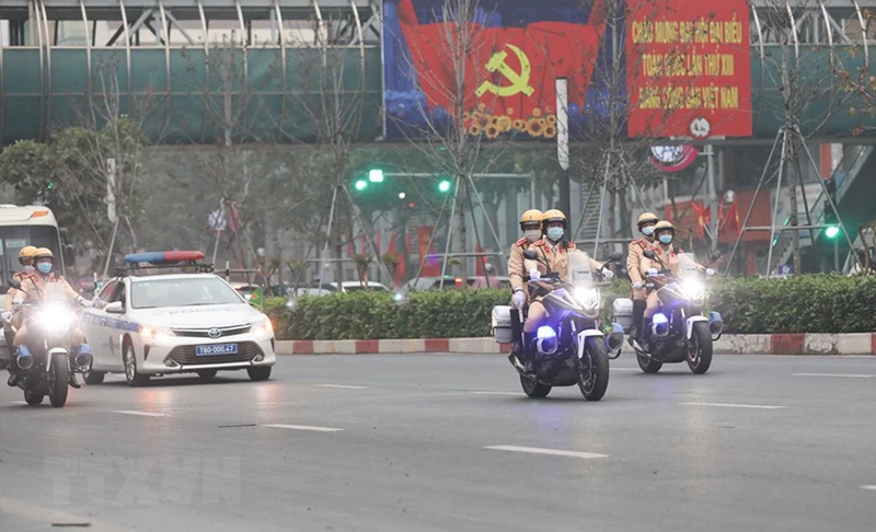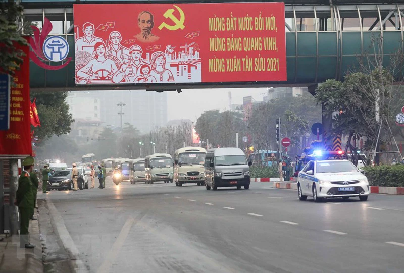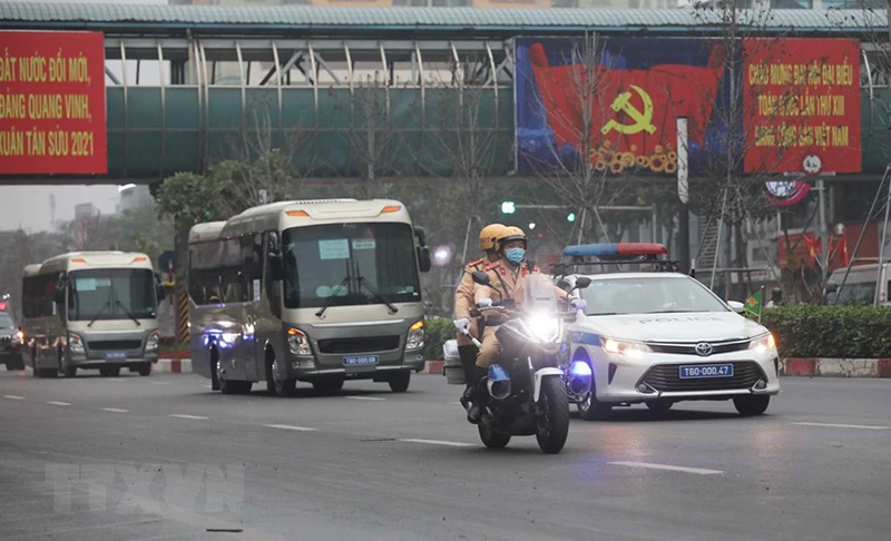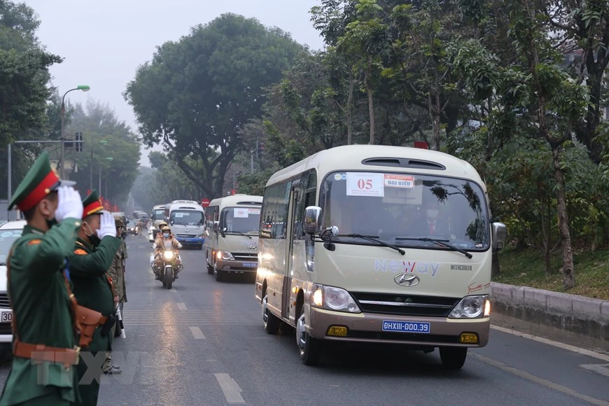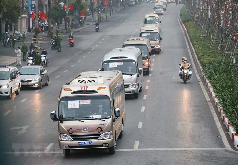 Đoàn xe đưa các đại biểu tới Trung tâm Hội nghị Quốc gia. Ảnh: TTXVN