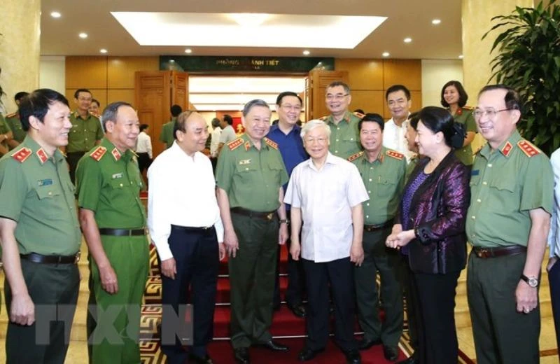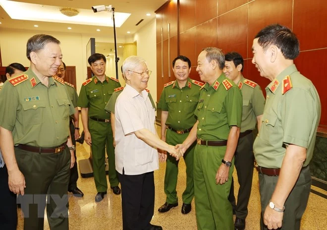 Tổng Bí thư, Chủ tịch nước nhấn mạnh vị trí, vai trò, tầm quan trọng của Công an nhân dân Việt Nam, cùng với Quân đội nhân dân Việt Nam là hai lực lượng quan trọng, là thanh kiếm và lá chắn để giữ gìn an ninh chính trị, trật tự an toàn xã hội, tạo môi trường thuận lợi để xây dựng và bảo vệ đất nước.