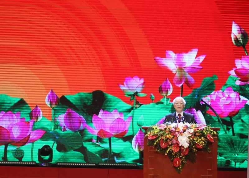 “Toàn Đảng, toàn dân, toàn quân ta nguyện kế tục trung thành và xuất sắc sự nghiệp vĩ đại của Chủ tịch Hồ Chí Minh, tiếp tục thực hiện lý tưởng cao cả của Người, kiên quyết kiên trì đấu tranh bảo vệ vững chắc độc lập chủ quyền, thống nhất và toàn vẹn lãnh thổ của Tổ quốc, xây dựng đất nước Việt Nam dân giàu, nước mạnh, dân chủ, công bằng, văn minh. Chúng ta nguyện giữ đoàn kết nhất trí trong Đảng như giữ gìn con ngươi của mắt mình, tiếp tục xây dựng, chỉnh đốn Đảng ngày càng trong sạch vững mạnh, làm hạt nhân cho khối đại đoàn kết toàn dân” - Tổng bí thư, Chủ tịch nước Nguyễn Phú Trọng nói.