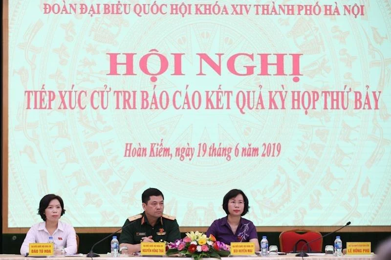 Các ĐBQH dự buổi tiếp xúc gồm thiếu tướng Nguyễn Hồng Thái, Tư lệnh Bộ Tư lệnh Thủ đô; bà Bùi Huyền Mai - Phó trưởng đoàn ĐBQH TP. Hà Nội và bà Đào Tú Hoa, Ủy viên Ủy ban Pháp luật của Quốc hội.