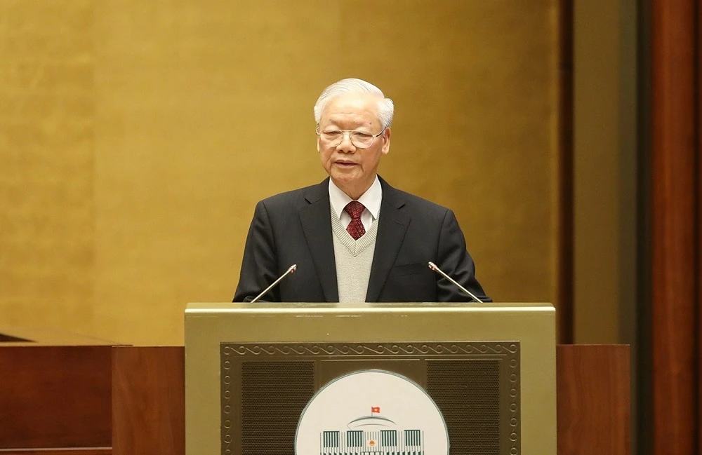 Tổng Bí thư nhấn mạnh, trong lịch sử hàng nghìn năm dựng nước và giữ nước của dân tộc, độc lập tự cường và bảo đảm cao nhất lợi ích quốc gia dân tộc luôn luôn là nguyên tắc bất di bất dịch, là sợi chỉ đỏ xuyên suốt trong toàn bộ hoạt động của chúng ta, hình thành các cuộc chiến đấu ngoan cường, bảo vệ giang sơn độc lập chủ quyền của đất nước. Ông cha ta đã luôn chú trọng hoạt động đối ngoại, tạo dựng những truyền thống và bản sắc riêng rất độc đáo của nền ngoại giao và hoạt động đối ngoại Việt Nam.