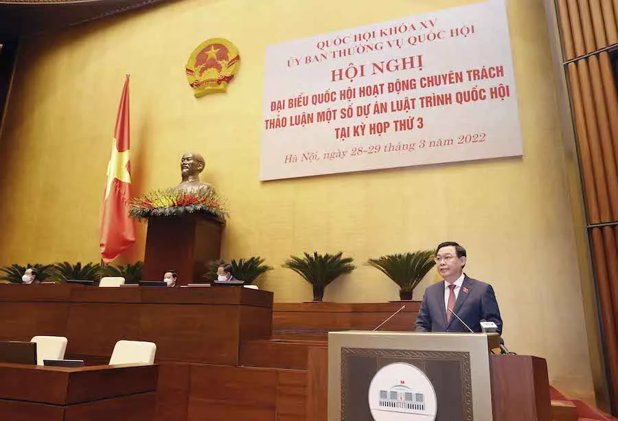 Sáng 28-3, Ủy ban Thường vụ Quốc hội khai mạc Hội nghị đại biểu Quốc hội hoạt động chuyên trách thảo luận về bốn dự án luật trình Quốc hội tại Kỳ họp thứ 3 theo hình thức tập trung tại Hội trường Diên Hồng, kết hợp họp trực tuyến.