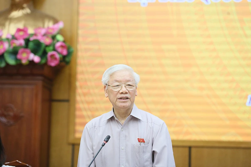 Sau khi nghe các ý kiến của cử tri và Chủ tịch UBND TP Hà Nội Nguyễn Đức Chung nói về vấn đề môi trường, kinh tế, xã hội của TP Hà Nội, Tổng bí thư, Chủ tịch nước Nguyễn Phú Trọng đã dành ít phút trong phần phát biểu của mình để góp ý cho lãnh đạo Hà Nội với tư cách là một công dân của thủ đô.