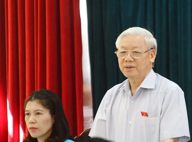 Tổng Bí thư Nguyễn Phú Trọng tại cuộc tiếp xúc với cử tri quận Ba Đình sáng nay, 17-10.
