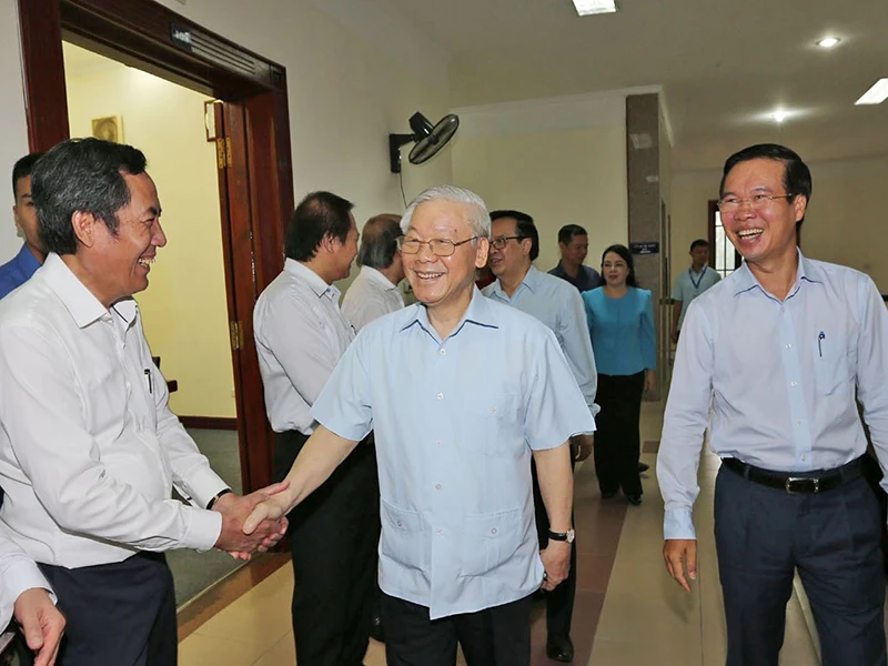 Tổng Bí thư Nguyễn Phú Trọng với các đại biểu. Ảnh: TTXVN