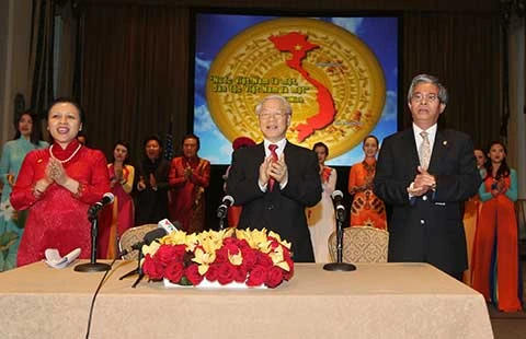Tổng Bí thư hoan nghênh đại đa số bà con Việt kiều đã hòa nhập tốt, tích cực đóng góp vào sự phát triển nơi sở tại, đồng thời hướng về quê hương đất nước không chỉ là các hoạt động từ thiện xã hội mà bằng cả tấm lòng, không chỉ đầu tư kinh doanh về trong nước mà còn tích cực đóng góp ý kiến tư vấn phản biện, góp phần xây dựng chủ trương chính sách, đào tạo nguồn nhân lực cho đất nước.