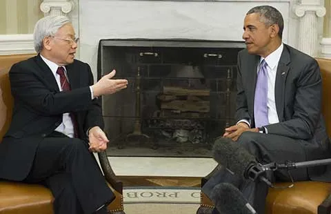 Tổng thống Mỹ Barack Obama ngày 7-7 đã tiếp Tổng Bí thư Nguyễn Phú Trọng tại Phòng Bầu dục ở Nhà Trắng, mở ra chương mới trong quan hệ giữa hai nước. Cùng dự buổi tiếp có Phó Tổng thống Joe Biden.