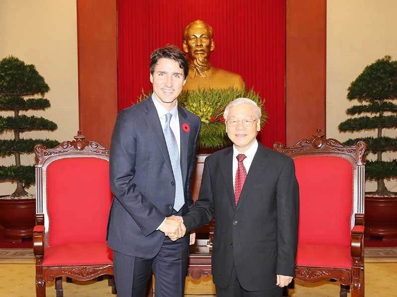 Tổng Bí thư Nguyễn Phú Trọng tiếp Thủ tướng Canada Justin Trudeau thăm chính thức Việt Nam. Ảnh: TTXVN