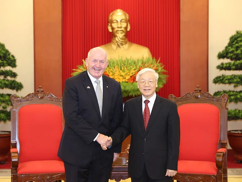 Tổng Bí thư Nguyễn Phú Trọng tiếp Toàn quyền Úc Peter Cosgrove sang thăm cấp nhà nước tới Việt Nam. Ảnh: TTXVN