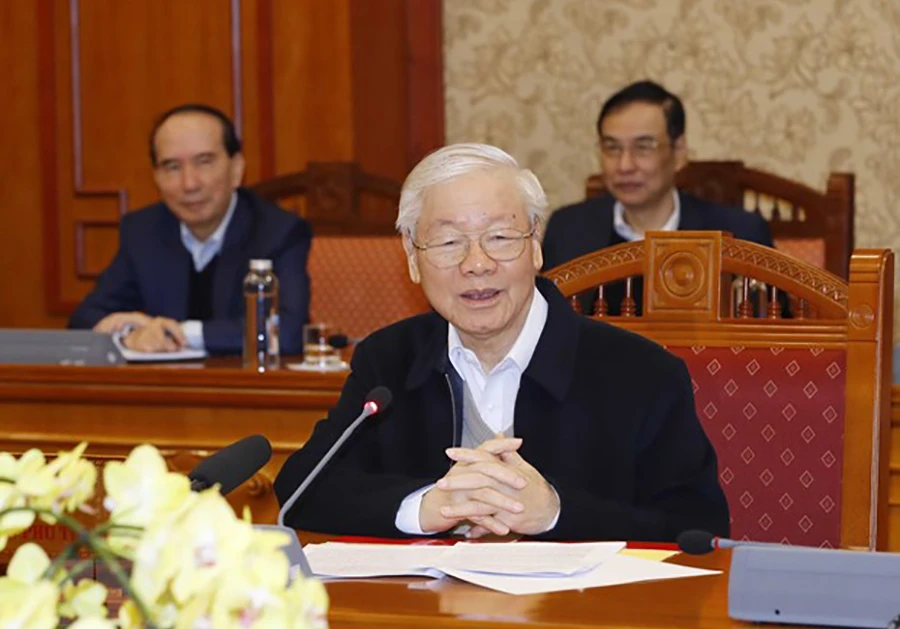 Tổng Bí thư Nguyễn Phú Trọng phát biểu chỉ đạo cuộc họp. Ảnh: TTXVN