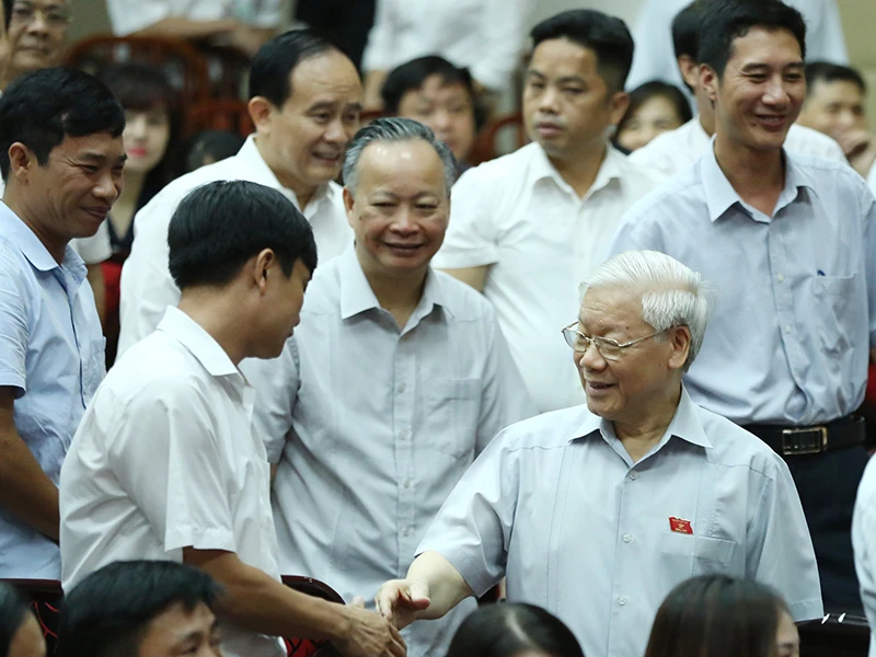 Tổng Bí thư Nguyễn Phú Trọng tiếp xúc cử tri ngày 17-6. Ảnh: ĐỨC MINH