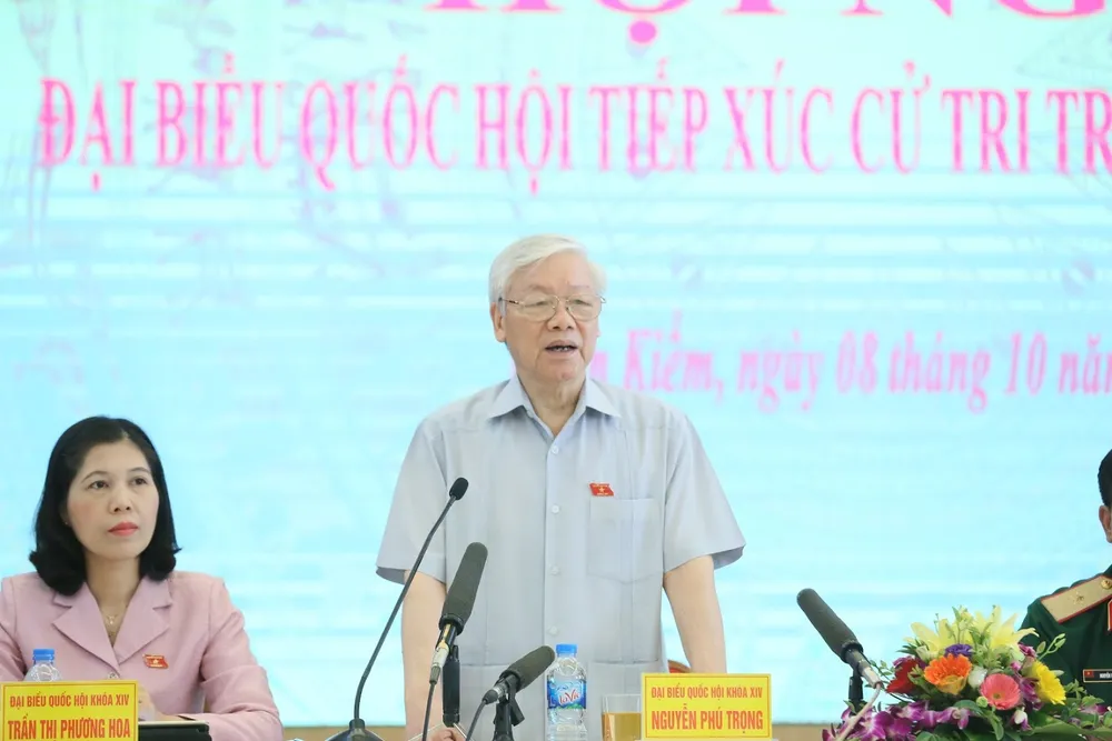 Tổng Bí thư Nguyễn Phú Trọng tại buổi tiếp xúc cử tri sáng 8-10.