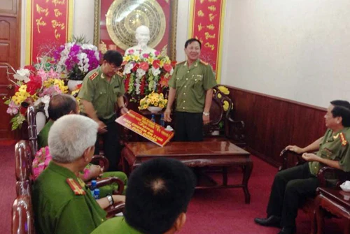 Trung tướng Ksor Nham đã trao tặng 50 triệu đồng tiền thưởng cho Ban chuyên án. Ảnh: Nguyễn Tân