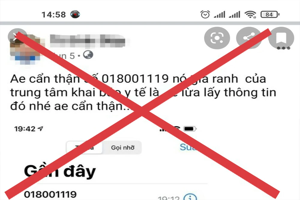 Bên cạnh sự e ngại của người dân, trên các trang mạng xã hội lại xuất hiện những thông tin giả mạo, cảnh báo người dân không nên nghe cuộc gọi từ đầu số 018001119 và 18001119 vì đây là số giả trung tâm khai báo y tế để lấy thông tin cá nhân của người dân.