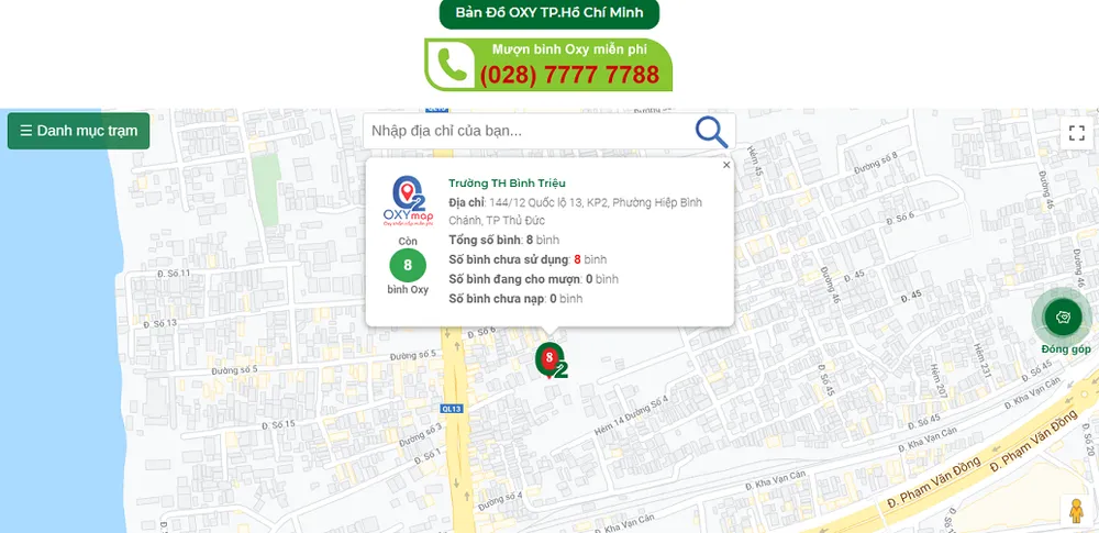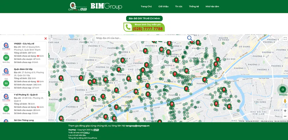 Đặc biệt, người dân truy cập website oxymap.vn sẽ tìm được các trạm cung cấp bình ôxy gần nhà với đầy đủ thông tin về địa chỉ, số lượng bình của trạm, bao nhiêu bình còn đầy, số bình đang cho mượn, số bình cần nạp ôxy...