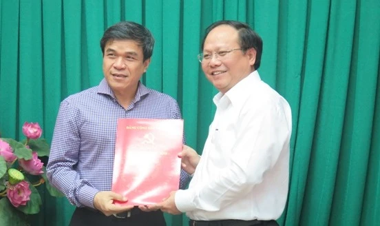 Phó Bí thư Thường trực Thành ủy TP.HCM Tất Thành Cang trao quyết định bổ nhiệm cho ông Nguyễn Quý Hòa. Ảnh: THIÊN LINH