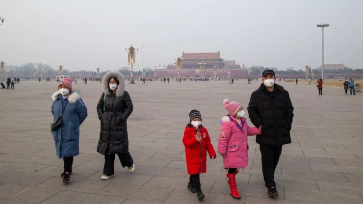 Một gia đình đeo khẩu trang phòng bệnh ở Bắc Kinh. Ảnh: CNBC