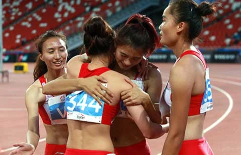 Trên đường chạy tiếp sức, các cô gái Việt Nam đã xuất sắc vượt mặt đại kình địch đoạt chức vô địch, đồng thời xô ngã kỷ lục đã tồn tại từ năm 1991.