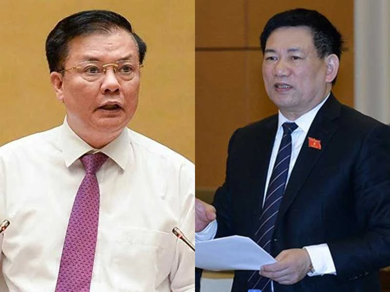 Bộ trưởng Tài chính Đinh Tiến Dũng (trái) và ông Hồ Đức Phớc, Tổng Kiểm toán Nhà nước (phải). Ảnh: PV