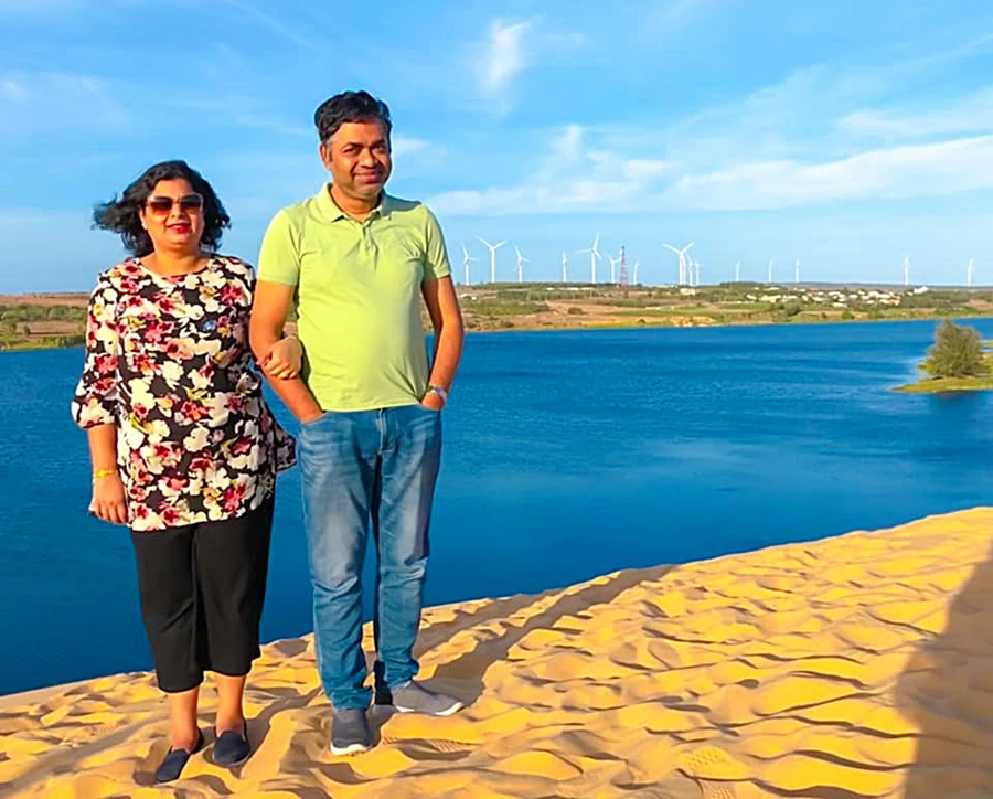 Vợ chồng ông Madan Mohan Sethi chụp ảnh lưu niệm. Ảnh: NQ