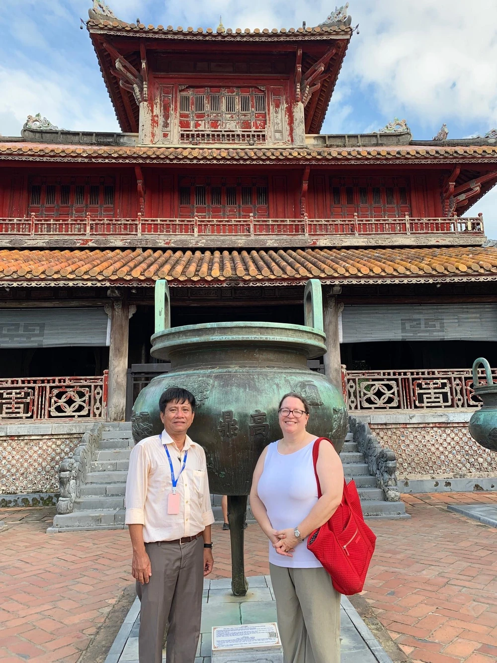 Tổng Lãnh sự Marie Damour thăm khu di tích Triệu Tổ Miếu trong kinh thành Huế. Ảnh: ACHCM