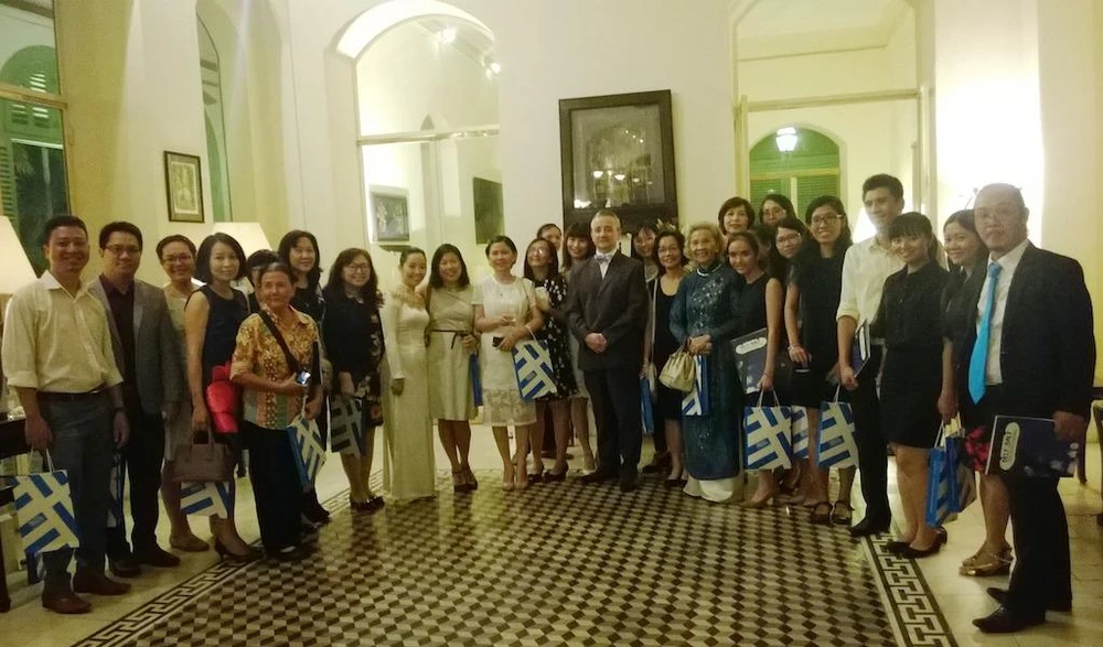 Các giáo viên tiếng Pháp chụp ảnh cùng tổng lãnh sự, lãnh sự quán Pháp tại TP.HCM.