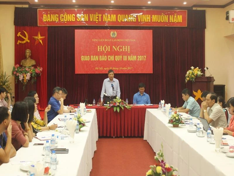 Ông Trần Thanh Hải, Phó Chủ tịch Thường trực Tổng Liên đoàn Lao động Việt Nam, nêu quan điểm tại buổi họp báo. Ảnh: VIẾT LONG