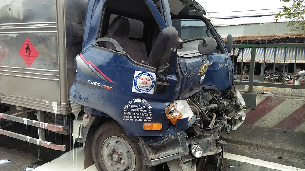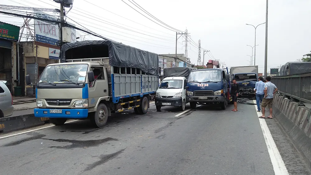Chiều 2-11, dòng xe chạy trên quốc lộ 1 hướng từ An Sương về An Lạc. Khi đến trước 350 quốc lộ 1, phường Bình Hưng Hòa B (quận Bình Tân, TP.HCM) do tránh xe tải 3,6 tấn gặp sự cố dừng đậu ở làn ô tô sát dải phân cách để sửa chữa nên ba xe tải loại 720 kg, 3,7 tấn và 3,3 tấn tông liên tiếp vào nhau.