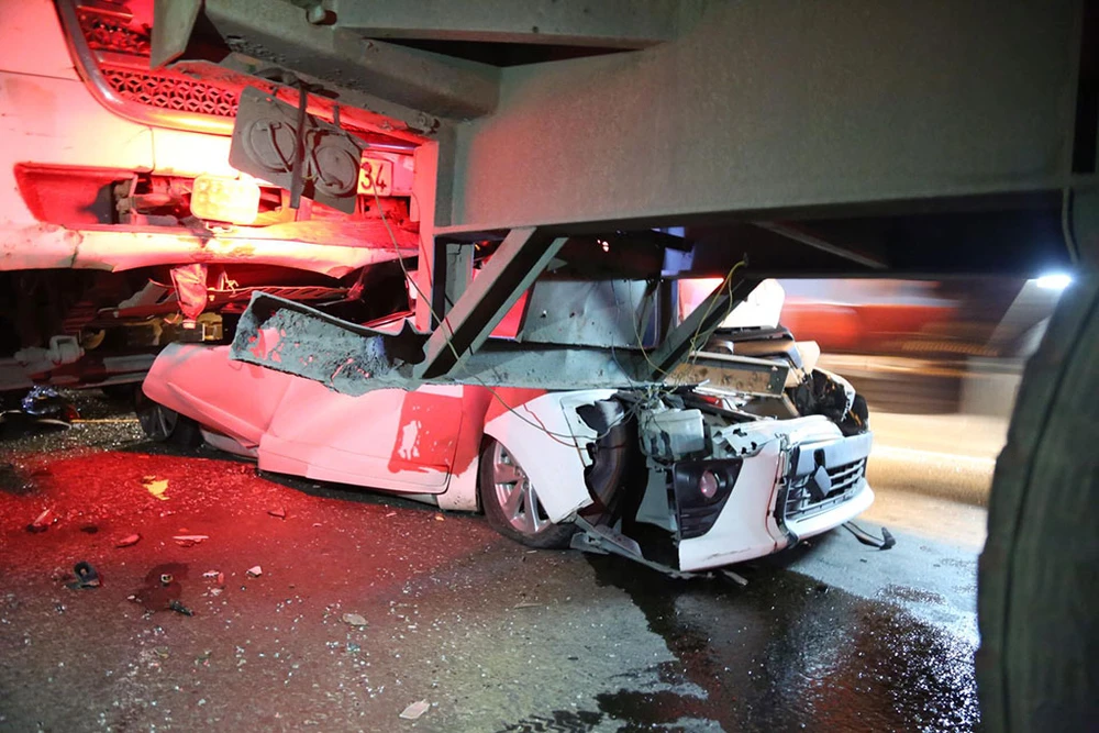 Tại hiện trường, ô tô bốn chỗ bẹp dúm, phần khung xe biến dạng hoàn toàn. Các phương tiện còn lại cũng hư hỏng phần đầu và đuôi.