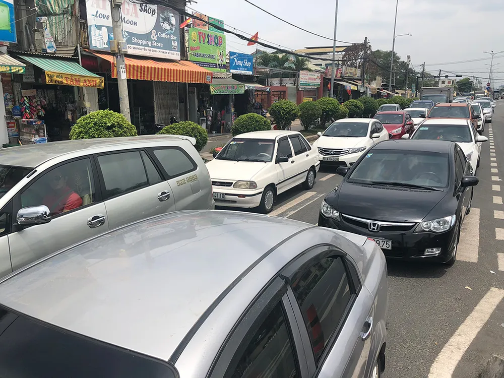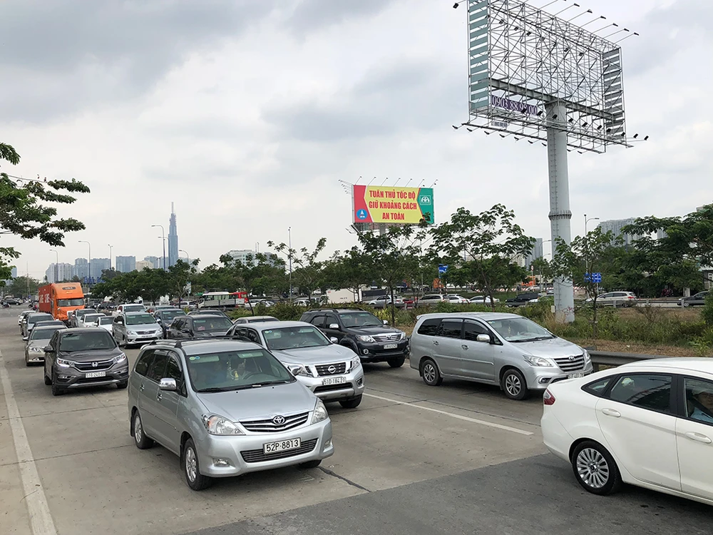 Các tuyến đường như xa lộ Hà Nội, Mai Chí Thọ, Lương Định Của, Đồng Văn Cống, Nguyễn Thị Định… hướng lên cao tốc cũng gặp khó khăn trong di chuyển.