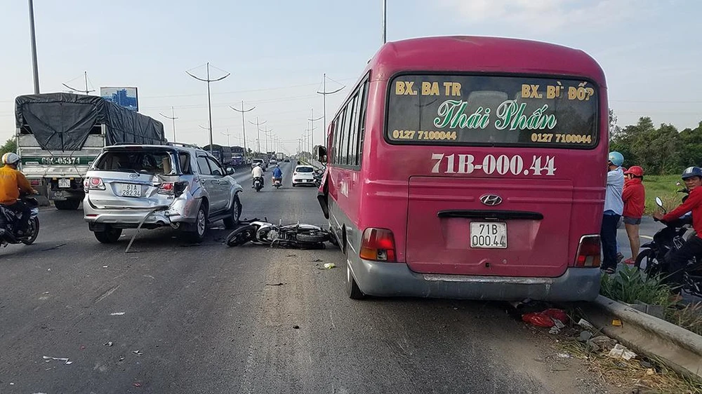 Khi qua giao lộ đường Trần Đại Nghĩa (huyện Bình Chánh) khoảng 200 mét thì xảy ra va chạm với hai phương tiện là ô tô 7 chỗ và xe khách 29 chỗ lưu thông cùng chiều.