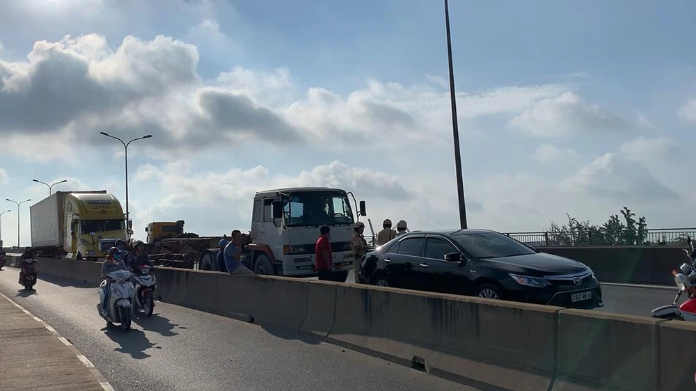 3 xe va chạm liên hoàn trên cầu Phú Mỹ sáng 13-6.