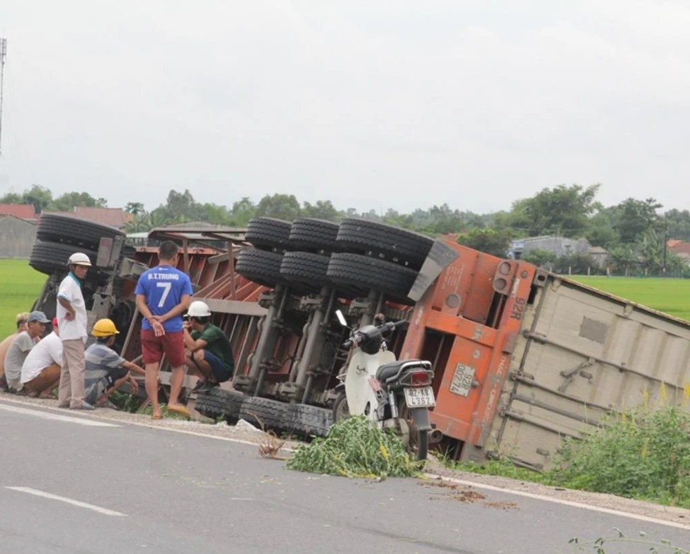 Thông tin từ CSGT huyện Thăng Bình (Quảng Nam) chiều 27-7 cho hay, đơn vị đang tiến hành điều tra nguyên nhân vụ tai nạn giao thông khiến container lật trên địa bàn.