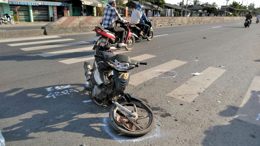 Thông tin ban đầu, khoảng 15 giờ 30, chiếc xe máy mang BKS 63S8-4292 do một người đàn ông (chưa rõ tên tuổi) điều khiển đang lưu thông trên QL 1A. Khi xe đi đến đoạn đường trên thì bất ngờ tông vào xe máy mang BKS 63U-0921 do Lưu Thành Đạt, 25 tuổi, ngụ huyện Gò Công Tây, tỉnh Tiền Giang điều khiển đang lưu thông ngược chiều trên QL 1A.