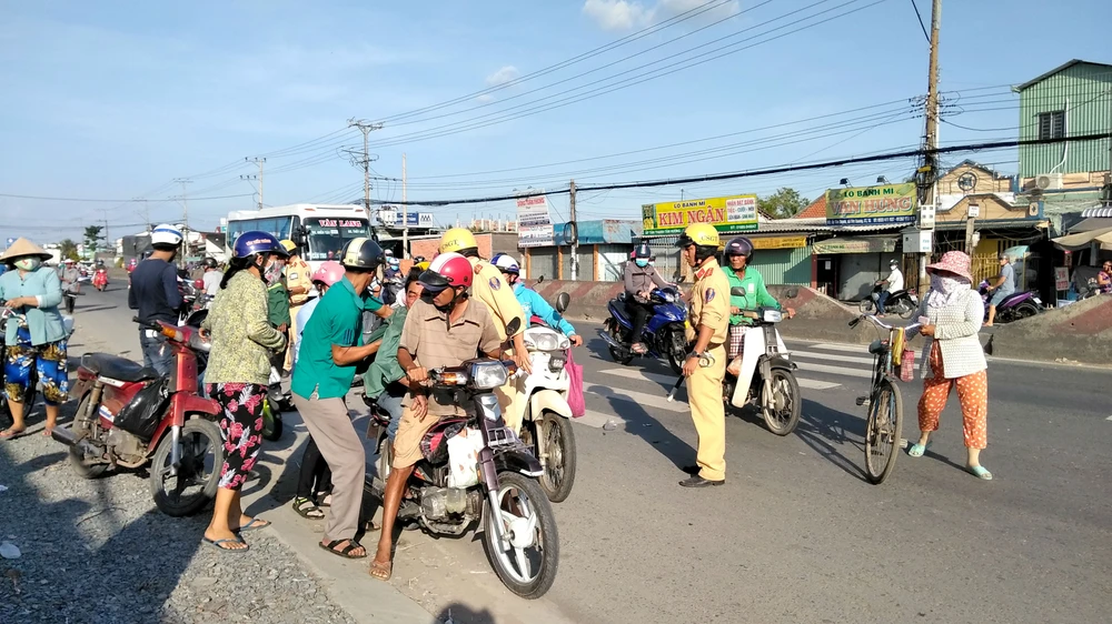 Nhận được tin báo, Phòng CSGT Công an tỉnh Tiền Giang kịp thời có mặt tại hiện trường, phối hợp Đội CSGT Công an huyện Châu Thành để điều tiết giao thông và điều tra nguyên nhân vụ tai nạn.