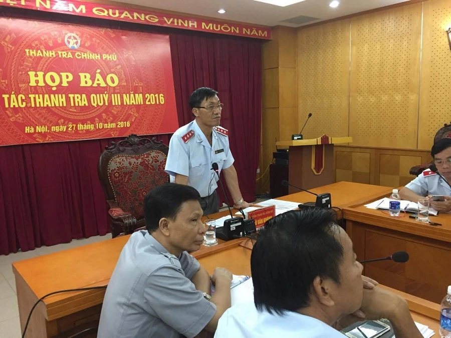 Phó Tổng Thanh tra Chính phủ Ngô Văn Khánh trả lời báo chí.