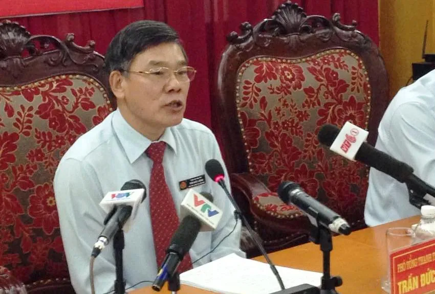 Ông Trần Đức Lượng, Phó Tổng TTCP trả lời các cơ quan báo chí tại buổi họp báo. Ảnh: Đ. TRUNG