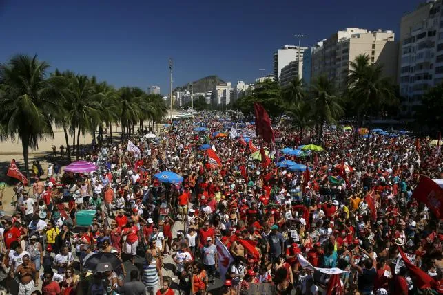 Người ủng hộ Tổng thống Dilma Rousseff xuống đường tại TP Rio de Janeiro (Brazil) ngày 17-4. (Ảnh: REUTERS)