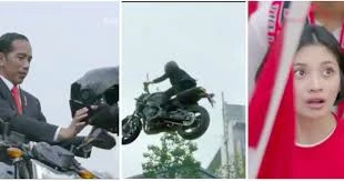 Hình ảnh Tổng thống Widodo cỡi mô tô được cắt ra từ clip