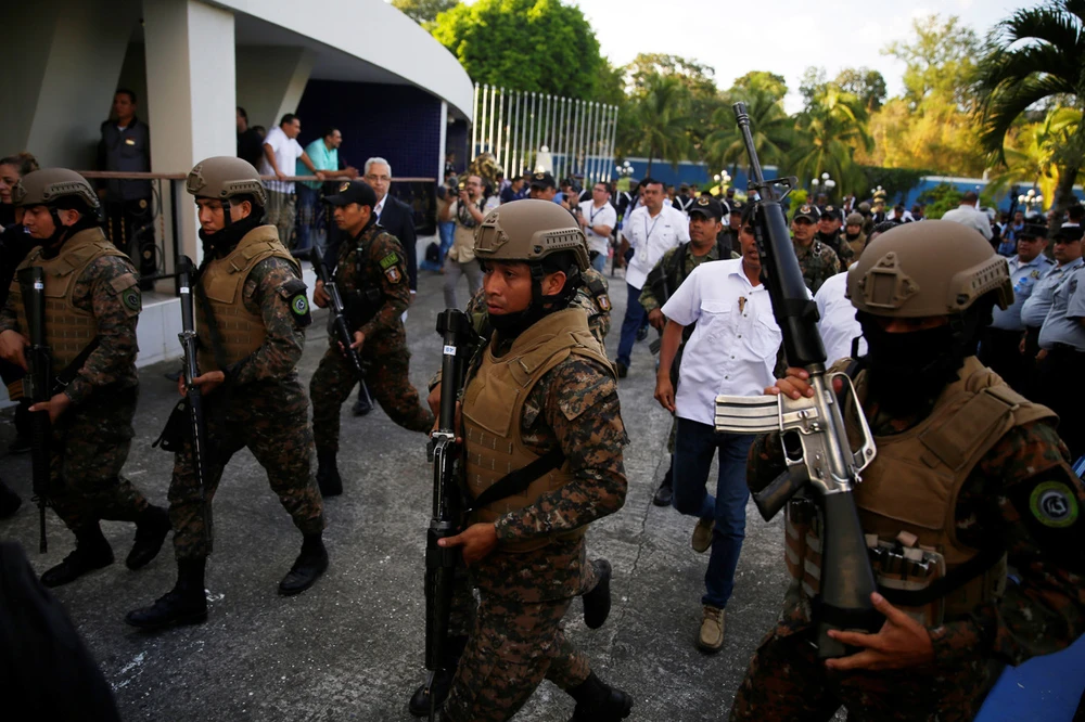 Vụ việc nghiêm trọng này xảy ra ngày 9-2. Binh sĩ có vũ khí, cảnh sát được trang bị súng tự động và mặc áo chống đạn đã hộ tống ông Bukele đến phiên họp bất thường của Quốc hội bàn về khoản vay này.
