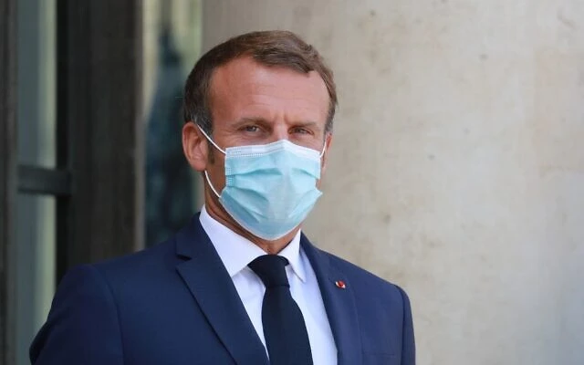 Tổng thống Pháp Emmanuel Macron đeo khẩu trang ngừa COVID-19. Ảnh: Ludovic Marin / AFP