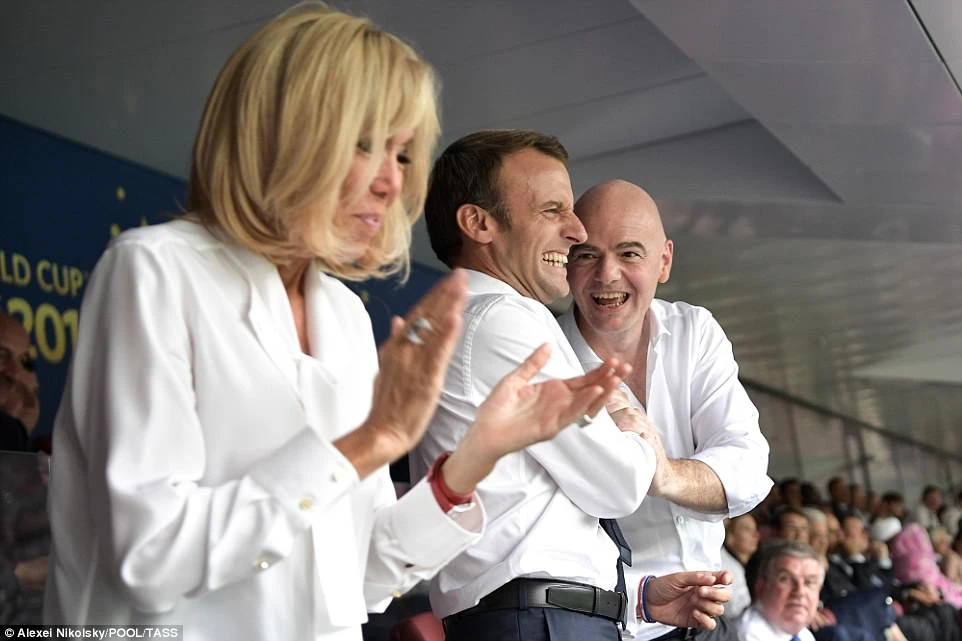 Trên khán đài, ngoài hàng ngàn người cổ vũ cho đội tuyển Pháp, đích thân Tổng thống Emmanuel Macron cùng phu nhân Brigitte Macron cũng đã đến trực tiếp sân vận động để cổ vũ đội Pháp.