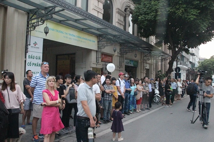 Người dân trên các tuyến phố Hà Nội đang chờ đón đoàn xe của Tổng thống Mỹ đi qua. Ảnh: TUYẾN PHAN