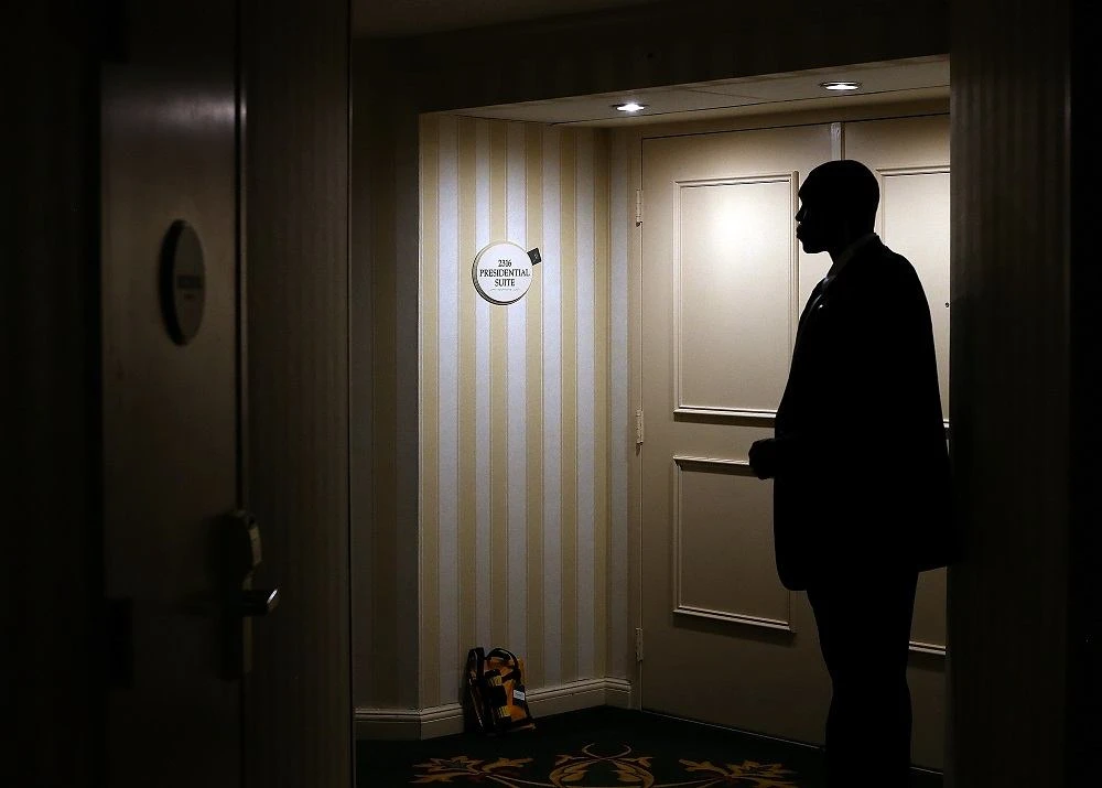 Tại khách sạn, nơi Tổng thống Mỹ nghỉ lại, các mật vụ có nhiệm vụ đảm bảo an ninh từ trước đó như khoanh vùng hạn chế, lắp kính chống đạn vào các cửa sổ phòng tổng thống ở, loại bỏ các điện thoại TV có sẵn để đảm bảo không bị nghe lén và thay bằng các thiết bị điện tử riêng.
