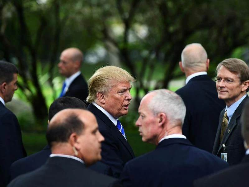 | Huy động 1.000 người để bảo vệ tổng thống Ông Ted Alles, Giám đốc cơ quan mật vụ Mỹ chuyên bảo vệ Tổng thống Trump phát biểu hồi tháng 5-2017 rằng đơn vị này cần tới 1.000 người để bảo vệ chủ nhân Nhà Trắng trong các chuyến đi. “Chúng tôi phải dàn quân rất nhiều vì số thành viên của gia đình ông Trump rất lớn và ông thường xuyên công du”. |