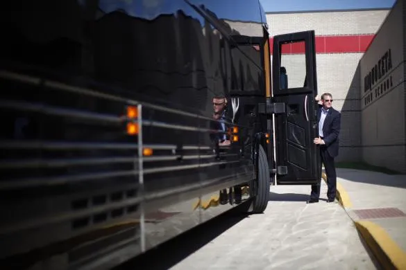 Một nhân viên mật vụ đợi Tổng thống Obama lên xe sau một chuyến viếng thăm Trung học Maquoketa, Iowa, ngày 16 tháng tám năm 2011.